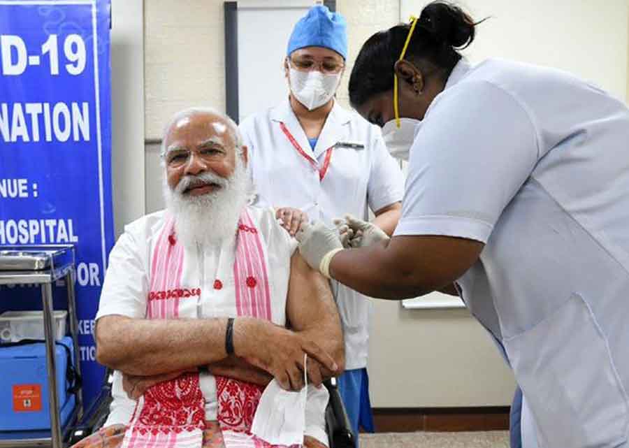प्रधानमन्त्री मोदीले भने, “खोप लगाउनुहोस्। सामाजिक दूरी कायम गर्न र मास्क लगाउन पनि नबिर्सिनुहोस्। यो राम्रो सुरक्षा कवच हो। यसको बारेमा सोच्नुहोस्।”