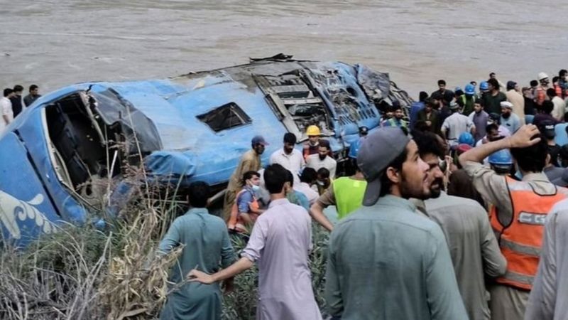 कोहिस्तानका अधिकारीका अनुसार बुधबार बिहान कराकरम हाइवेमा डासू बाँध साइट नजिकै बस दुर्घटना भएको छ ।