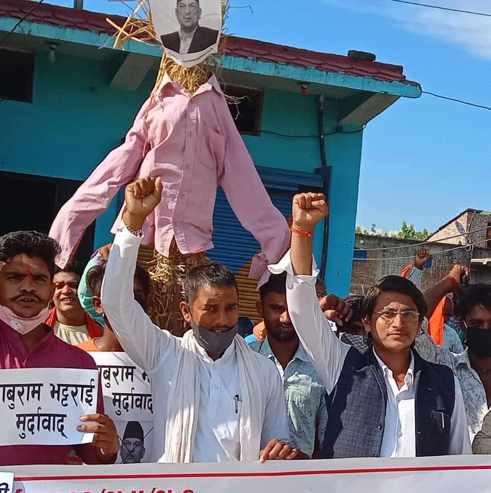 सामाजिक संजाल ट्विटर मार्फत हिन्दु धर्म , सांस्कृति र आस्था माथि ठाडो प्रहार गरेको अभद्र टिका टिप्पणी प्रति महाकाल सामाजिक संस्थाका युवाहरु आक्रोशित भई हिन्दु बिरोधी नेता डा. बाबुराम भट्टराई मुर्दाबाद भन्दै नाराबाजी गरी पुतला दहन गरेका छन्। कार्यक्रममा संस्थाका अध्यक्ष धर्मराज विश्वकर्माले पुर्व प्रधानमन्त्री डा.बाबुराम भट्टराईलाई कानुनी दायरामा ल्याई कडा कारबाही गर्न माग गरेका हुन्। कसैले पनि हिन्दु र हिन्दुत्व माथि आच आउने किसिमको कुनै पनि कार्य गरेकोमा त्यसको घोर बिरोध गरिनेछ भनी आक्रोशित रुपमा संस्थाका क्षेत्रिय अध्यक्ष सुनिल शुक्ल र संस्थाका शिवराज नगरपालिकाको नगर संयोजक आनन्द शुक्लाले बताएका छन्।