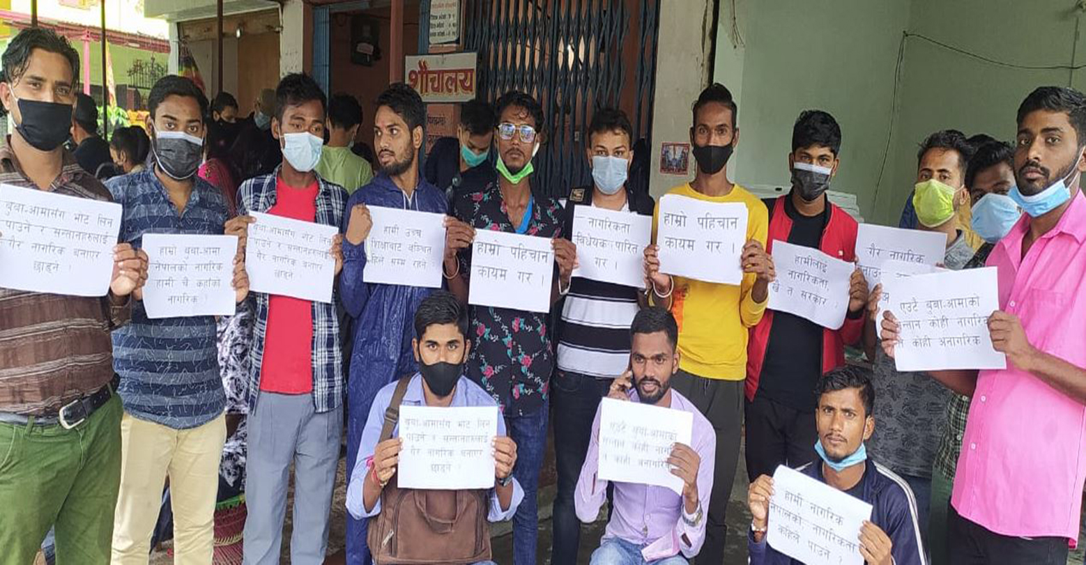 प्रतिनिधिसभामा विचाराधिन नागरिकता विधेयक चाँडो पारित गर्न माग गदै विराटनगरमा युवाहरुले प्रर्दशन गरेका छन्। जन्मसिद्ध नागरिकता पाएका अभिभावकका सन्तानलाई चाँडो वंशजका आधारमा नागरिकता दिलाउन विधेयक पारित गराउन माग गर्दै युवाहरुले आइतबार सांकेतिक प्रर्दशन गरेका हुन्।