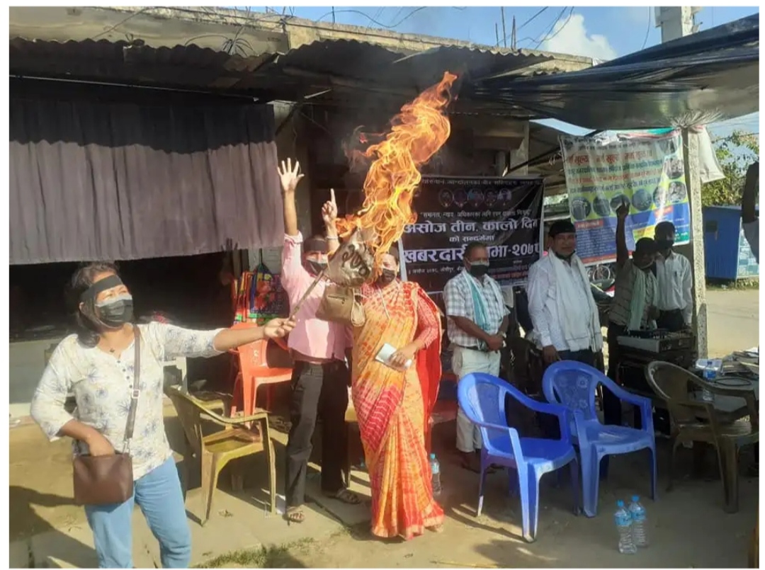 थरुहट मोर्चाले संविधानको धारा २७४ जलाइ कालाे दिन मनायाे