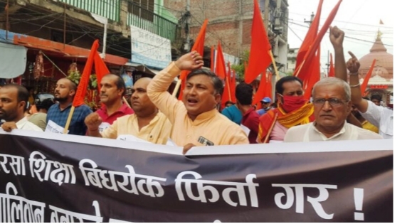 प्रदर्शनकारीहरूले ‘मदरसा विद्येयक खारेज गर, प्रदेश २ लाई तालिवान बनाउन पाइदैन, नेपाललाई हिन्दु राष्ट्र कायम गर’ लगायतका नारा लगाएका थिए । वीरगन्जको माइस्थान मन्दिर अगाडिबाट निकालिएको विरोध जुलुस वीरगन्ज नगर परिक्रमा गरी घण्टाघर चोकमा पुगेर कोणसभामा परिणत भएको थियो ।सभालाई सम्बोधन गर्दै अभियानका अध्यक्ष विनय यादवले पाकिस्तानको इसारामा मदरसा शिक्षा विद्येयक ल्याएर प्रदेश २ लाई ता लि वा न बनाउन खोजेको आरोप लगाए । ‘पाकिस्तानका प्रधानमन्त्री इमरान खानको दुत भएर आइएसआईको एजेन्टको रुपमा मुख्यमन्त्री राउतले काम गर्दै आएका छन् ।’