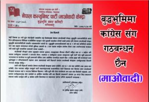 ‘बुद्धभूमिमा काँग्रेस सँग गठवन्धन छैन’ माओवादी, काँग्रेसलाई मतदान गर्नेलाई ५ वर्ष निलम्वन
