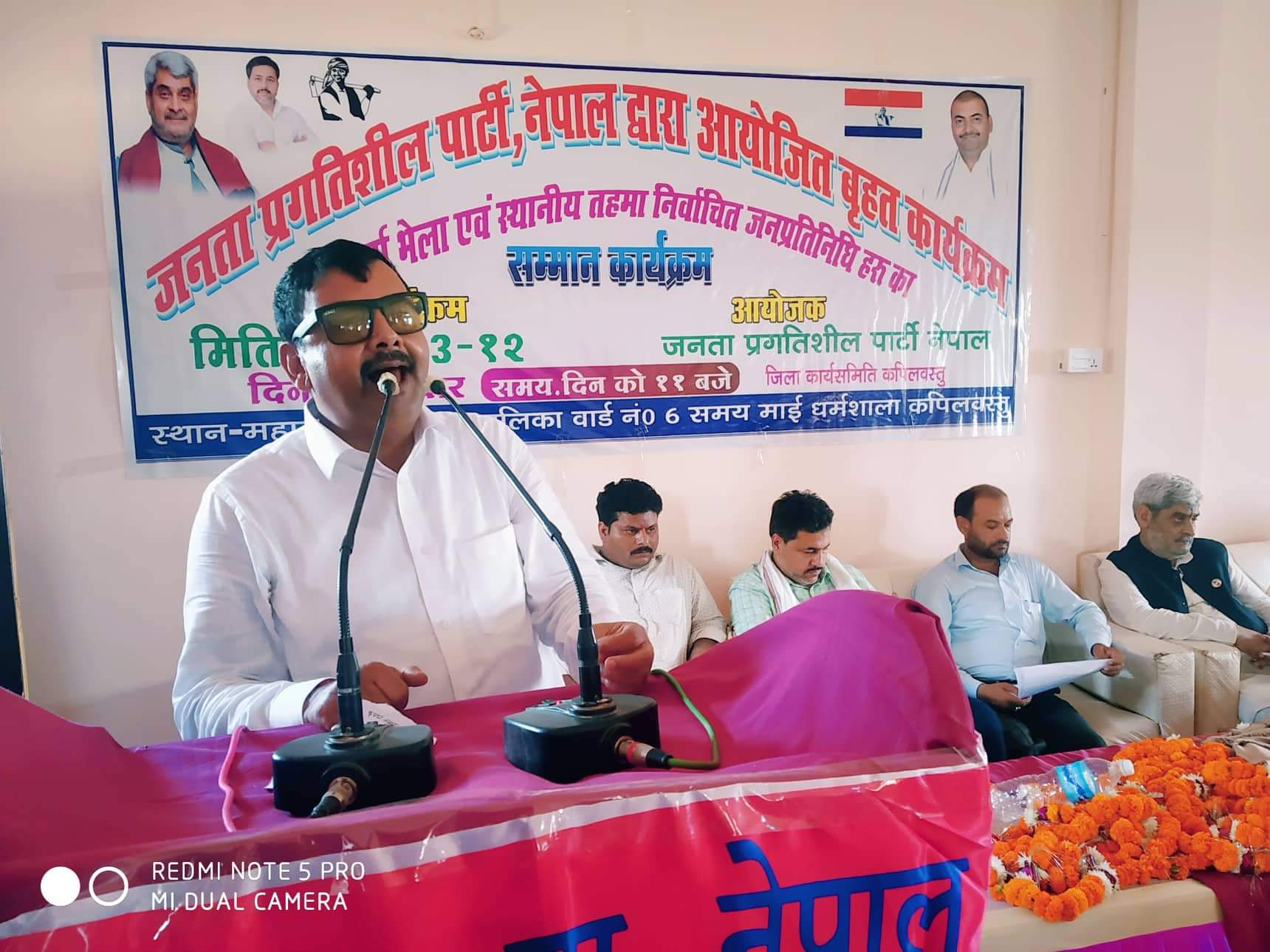 जनता प्रगतिशील पार्टी नेपालकोको कार्यकर्ता भेला एवं स्थानीय तहमा निर्वाचित जनप्रतिनिधि हरूको सम्मान कार्यक्रम कपिलवस्तु जिलाको महाराजगंज नगरपालिका वडा नं ७ समयमाई धर्मशालामा सम्पन्न भएको छ ।