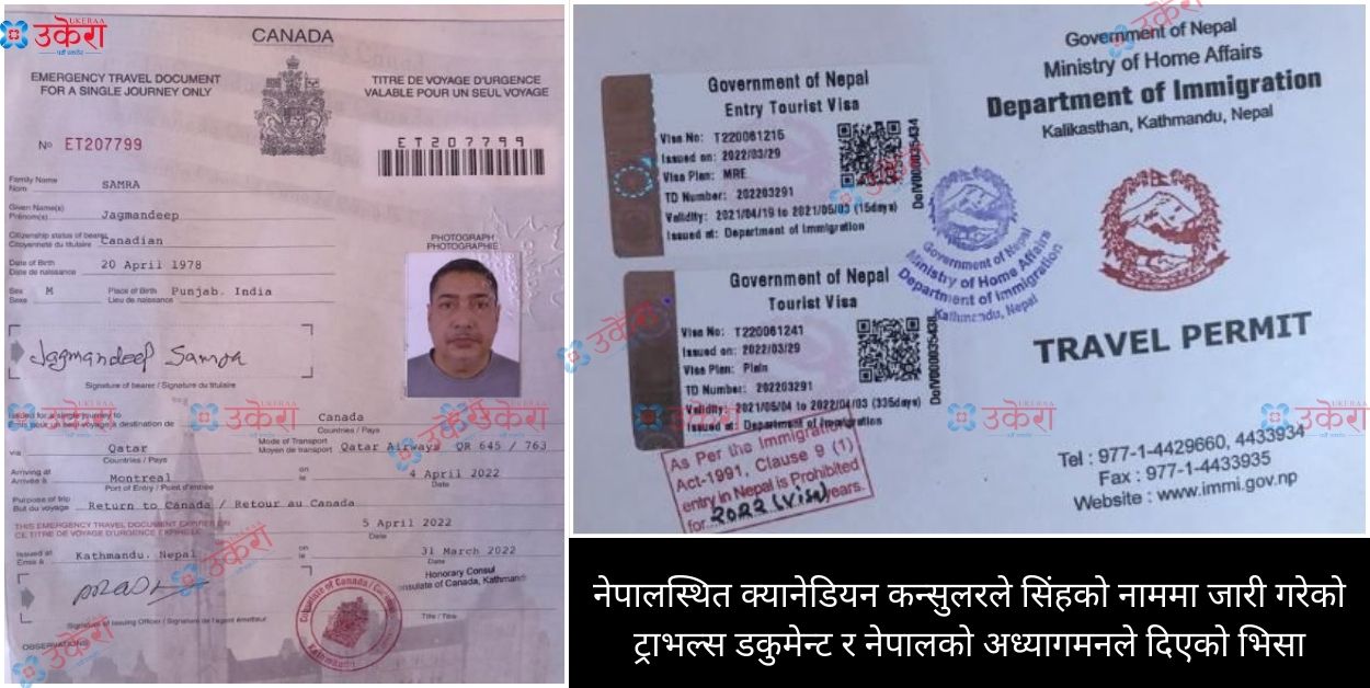 २०२२ मार्च २२ मा सिंहको श्रीमतीले अध्यागमन विभागमा क्यानडाको कन्सुलर विभागबाट क्यानडा पठाइदिने आग्रहसहित आएपछि उनी भारत आएको मितिको भोलिपल्ट नेपाल आएको मानेर पहिलो भिसा जारी गरेको र क्यानडा पठाउन दोस्रो भिसा जारी भएको रेकर्डमा देखिएको उनले उकेरालाई जानकारी दिए।