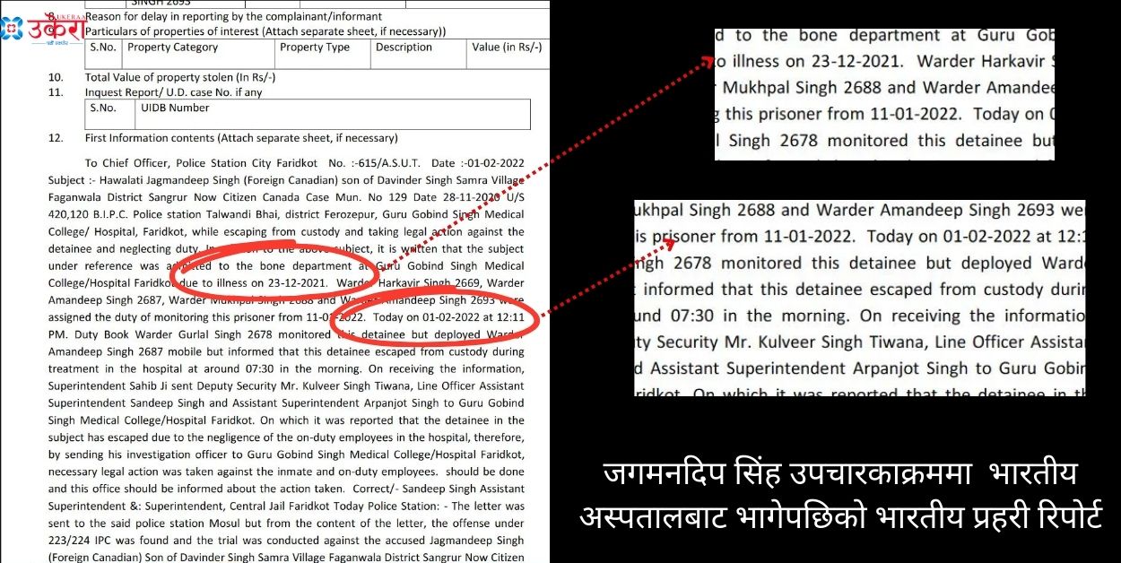काठमाडौँ । क्यानडा निवासी जगमनदिप सिंह भारतीय जेलबाट फरार भएर नेपाल आइ सहजै पुन क्यानडा फर्किएको खुलेको छ। उपचारकोक्रममा अस्पतालबाट भागेर नेपाल छिरेका उनलाई नेपालको गृह प्रशासनका अधिकारीहरूले १५ लाख घुस खाएर उनी भारतको जेलमा भएको मितिको भिसा जारी गरेर उनलाई क्यानडा भाग्न सघाएका हुन्।