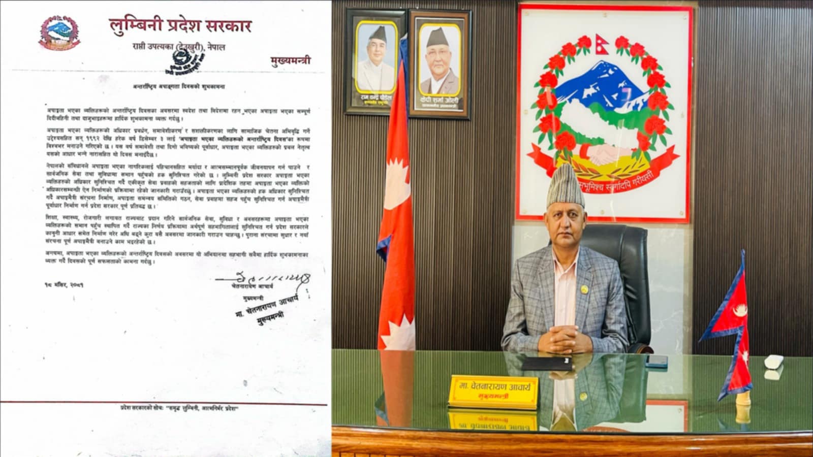 ‘नेपालको संविधानले अपाङ्गता भएका नागरिकलाई पहिचानसहित मर्यादा र आत्मसम्मानपूर्वक जीवनयापन गर्न पाउने र सार्वजनिक सेवा तथा सुविधामा समान पहुँचको हक सुनिश्चित गरेको छ । लुम्बिनी प्रदेश सरकार अपाङ्गता भएका व्यक्तिहरुको अधिकार सुनिश्चित गर्दै एकीकृत सेवा प्रवाहको सहजताको लागि प्रादेशिक तहमाअपाङ्गता भएका व्यक्तिको अधिकारसम्बन्धी ऐन निर्माणको प्रक्रियामा रहेको जानकारी गराउँदछु’ शुभकामना सन्देशमा भनिएको छ, ‘शिक्षा, स्वास्थ्य, रोजगारी लगायत राज्यबाट प्रदान गरिने सार्वजनिक सेवा, सुविधा र अवसरहरूमा अपाङ्गता भएका व्यक्तिहरूको समान पहुँच स्थापित गर्दै राज्यका निर्णय प्रक्रियामा अर्थपूर्ण सहभागितालाई सुनिश्चित गर्न प्रदेश सरकारले कानुनी आधार समेत निर्माण गरेर अघि बढ्ने कुरा यसै अवसरमा जानकारी गराउन चाहन्छु ।’