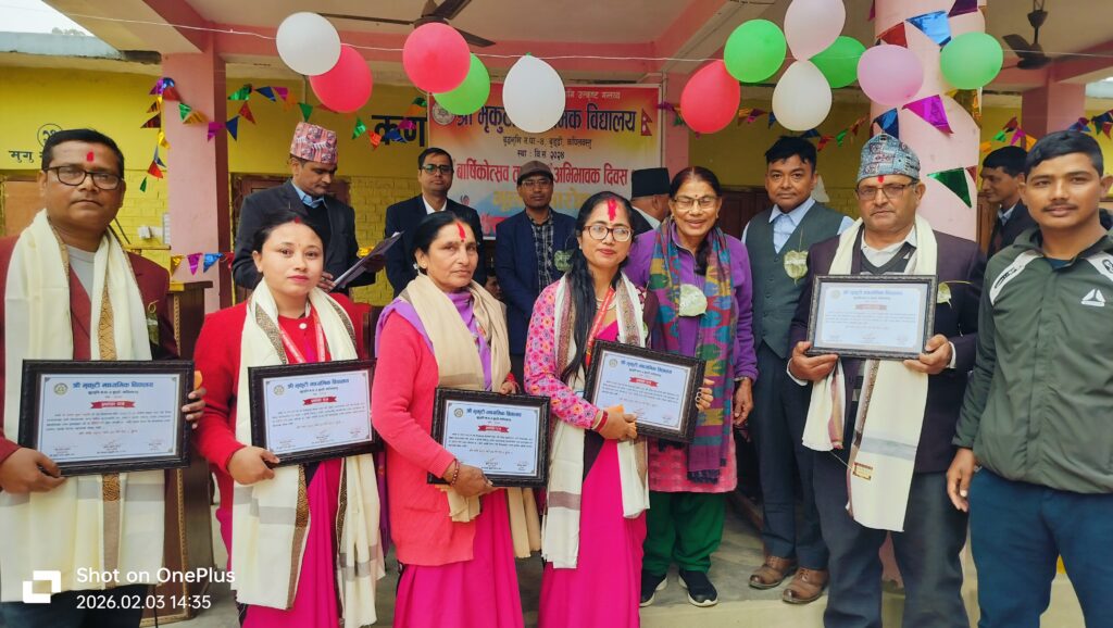 वडाध्यक्ष सुशील कुमार थारुकाे प्रमुख अतिथ्यता समाजसेवी तथा विद्यालय व्यवस्थापन समिति अध्यक्ष मीनराज बेल्बासेकाे अध्यक्षता र शिक्षक कृष्ण घिमिरेकाे संचालनमा विभित्र सांस्कृतिक कार्यक्रम गरि मनाइएकाे छ। विद्यालयले एसईई परीक्षा २०८१ मा उत्कृष्ट दुई विद्यार्थीलाई जनही १५ हजारकाे दरले पुरष्कृत गरेकाे छ। त्यसैगरि कार्यक्रममा कुल चार जना उत्कृष्ट शिक्षकलाई समेत सम्मान गरेकाे प्रधानाध्यापक बेदप्रकाश भुषालले बताउनु भएकाे छ ।