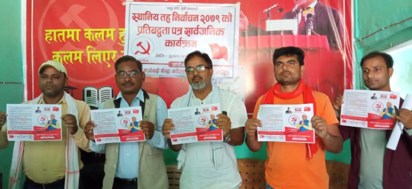 कपिलवस्तु -नेकपा माओबादी केन्द्र कपिलवस्तु नगर समितिले आगामी बैशाख ३० गते हुने निर्वाचनलाई लक्षित गरी प्रतिबद्धताहरु सार्बजनिक गरेको छ । कपिलवस्तु नगरपालिका– २ जमुहारटोल स्थित पार्टी कार्यालयमा आयोजित कार्यक्रममा पार्टीका बैकल्पिक केन्द्रिय सदस्य जीत बहादुर चौधरी,…