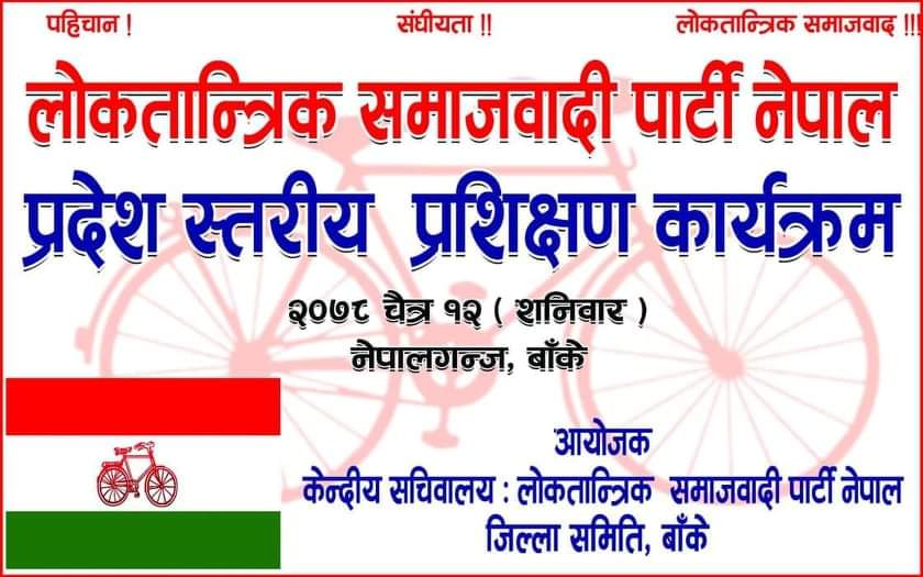 नेपालगन्ज, चैत ११ गते ।लोकतान्त्रिक समाजवादी पार्टी नेपाल (लोसपा) को प्रदेश स्तरीय प्रशिक्षण कार्यक्रम (शनिवार) देखि नेपालगञ्जमा सुरू हुदै छ । आगामी स्थानीय तह निर्वाचनमा केन्द्रित रहेर पार्टीका शिर्ष नेताहरुको उपस्थितिमा प्रशिक्षण कार्यक्रम हुने छ ।लोसपा…