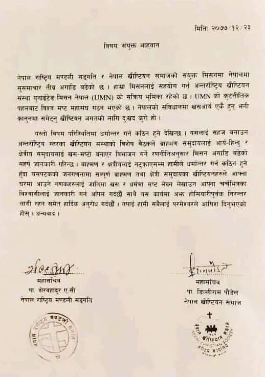 काठमाडौँ। धर्मान्तरण गर्ने कार्यमा सक्रिय रहेका क्रिस्टियन संस्थाहरुले अब हुने राष्ट्रिय जनगणनामा हिन्दूहरुको जनसंख्या घटाउन विभिन्न रणनीति अपनाइरहेको बुझिएको छ। क्रिस्टियन संस्था हिन्दूहरुको जनसंख्या कम देखाउनको लागि खसआर्य समुदायलाई भिन्न बनाउन लागि परेको तथ्य खुलेको छ।…