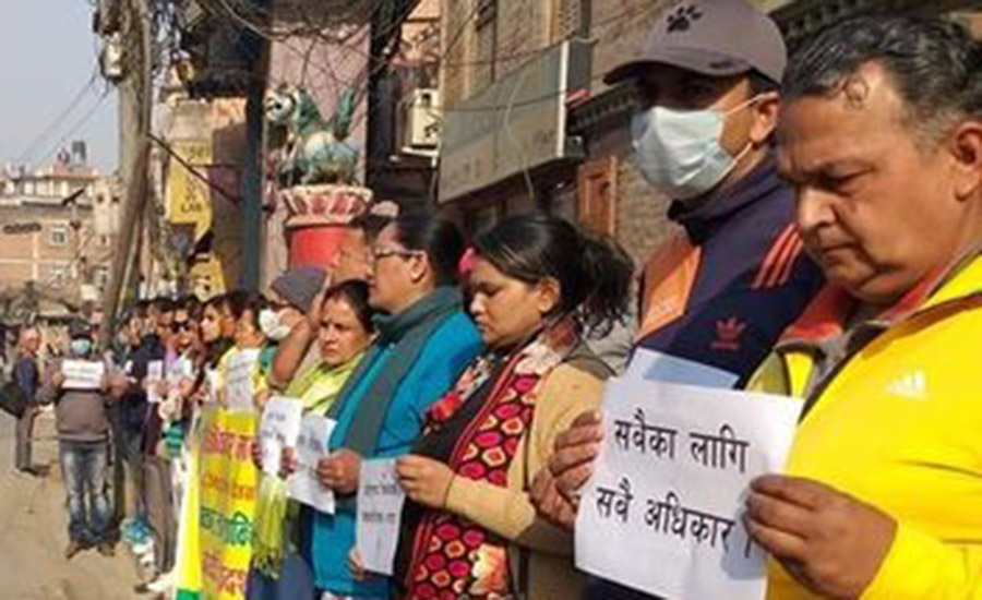 काठमाडौं / ९ चैत्र। अन्तर्राष्ट्रिय जातीय विभेद उन्मूलन दिवसको अवसर पारेर मानव अधिकार तथा शान्ति समाजले आइतबार काठमाडौंको बौद्धमा प्रदर्शन गरेको छ । जातीय विभेदको जड दण्डहीनता भएकाले दण्डहीनताको अन्त्य र सामाजिक न्यायको प्रत्याभूतिका…