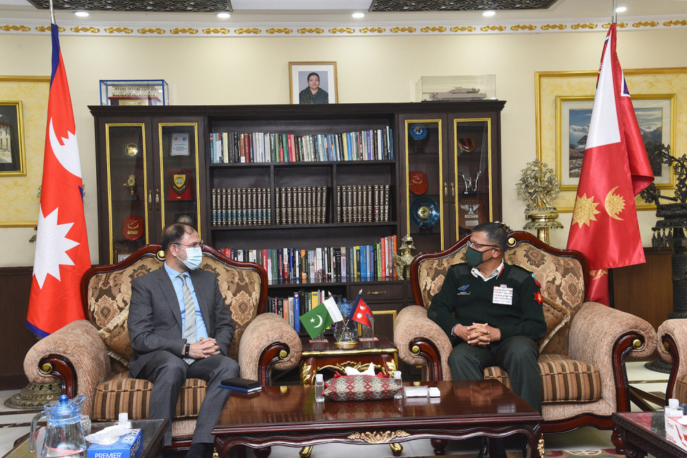 [caption id="attachment_8272" align="aligncenter" width="1000"] तस्बिर : कान्तिपुर पत्रिका[/caption] काठमाडौ , चैत्र २ । नेपालका लागि पाकिस्तानका नवनियुक्त राजदूत हैदर शाहले प्रधानसेनापति पूर्णचन्द्र थापासँग सोमबार भेटवार्ता गरेका छन् । थापालाई भेट्न हैदर सैनिक मुख्यालय जंगी अड्डा पुगेकाे…