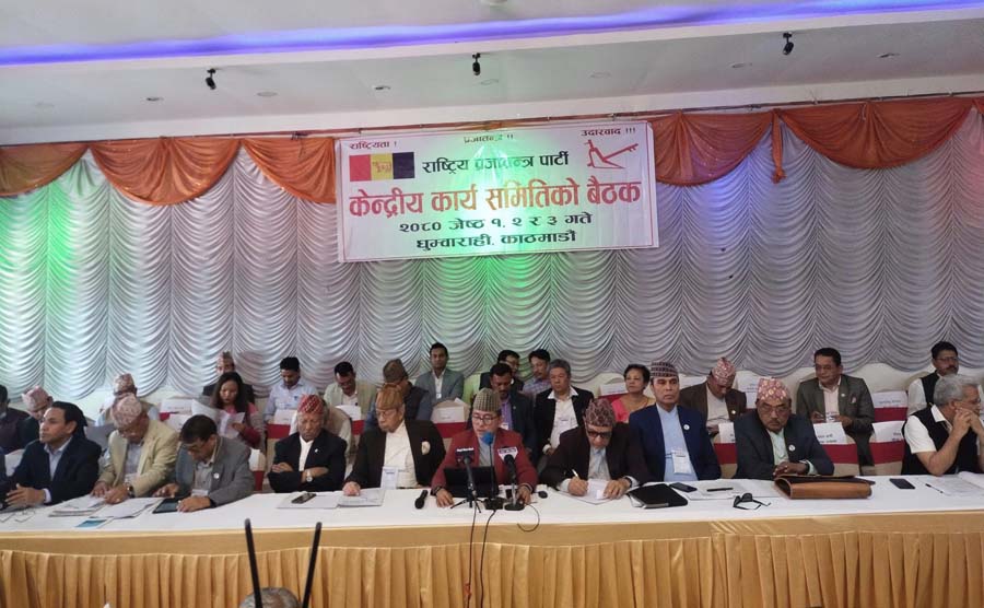 काठमाडौं । राष्ट्रिय प्रजातन्त्र पार्टी राप्रपाको केन्द्रीय समितिको पूर्ण बैठक आज पनि जारी रहेकोछ । बिहान ८ बजे पुनः बस्दैछ । काठमाडौँको धूम्रबराहीमा सोमबारदेखि शुरु भएको बैठकमा प्रस्तुत गरिएका प्रतिवेदनमा छलफलको क्रम जारी रहेकाले आज पुनः…