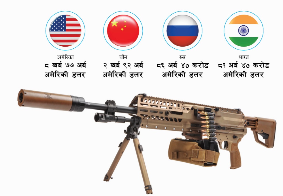काठमाडाैं । ३० वर्षयता युरोपको पनि सैन्य खर्च बढेको छ । रुस–युक्रेन युद्धपछि युरोपले सैन्य खर्च १३ प्रतिशत बढाएको छ । २०२२ मा विश्वमा कुल सैन्य खर्च ३.७ प्रतिशतले बढेको छ । स्टकहोम इन्टरनेसनल पिस रिसर्च इन्स्टिच्युट…