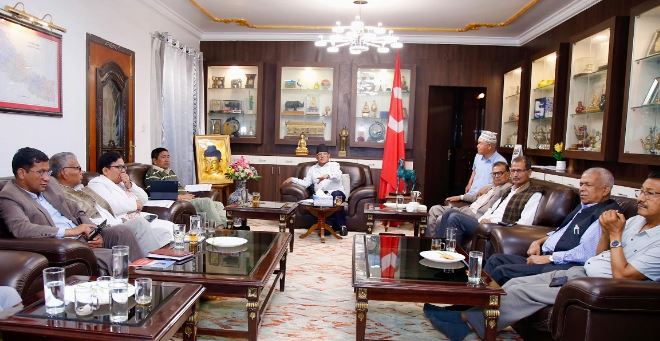 काठमाडौं : गृहमन्त्रीको राजीनामा माग गर्दै विपक्षी दलहरूले संसद अवरोध गरेपछि नेकपा एमाले र नेपाली कांग्रेस छलफलमा जुटेका छन्। अहिले प्रधानमन्त्री केपी शर्मा ओलीलाई भेट्न नेपाली कांग्रेसका सभापति शेरबहादुर देउवा र गृहमन्त्री रमेश लेखक बालुवाटार पुगेका…