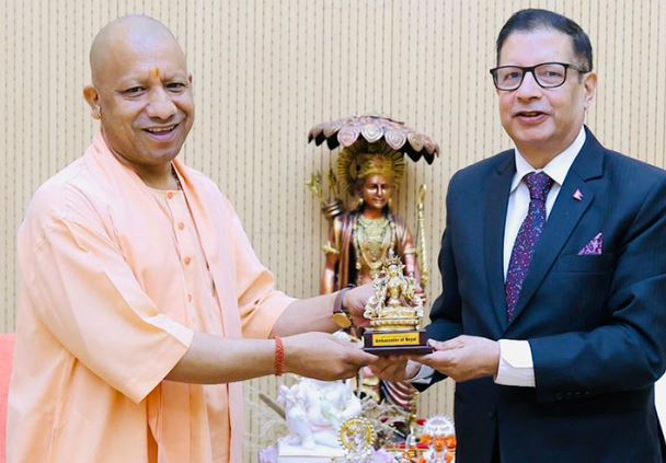 आदित्यनाथलाई भेट्न लखनऊ पुगे राजदूत शर्मा