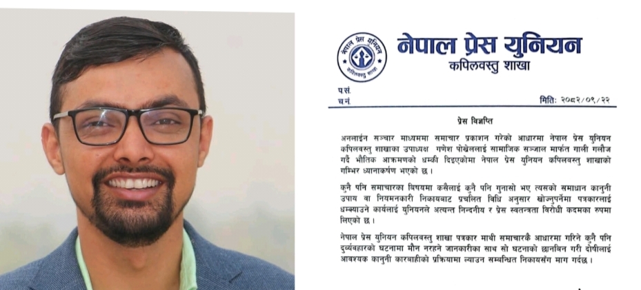 कपिलवस्तु , पुस २२ । जिल्लाकाे बाणगंगामा समाचार प्रकाशन गरेका कारण एक जना पत्रकारलाई समाजिक संजालमा गाली गलाैज र भाैतिक आक्रमणकाे धम्की दिइएकाे छ ।अनलाईन सञ्चार माध्यममा समाचार प्रकाशन गरेको आधारमा नेपाल प्रेस युनियन कपिलवस्तु शाखाका…